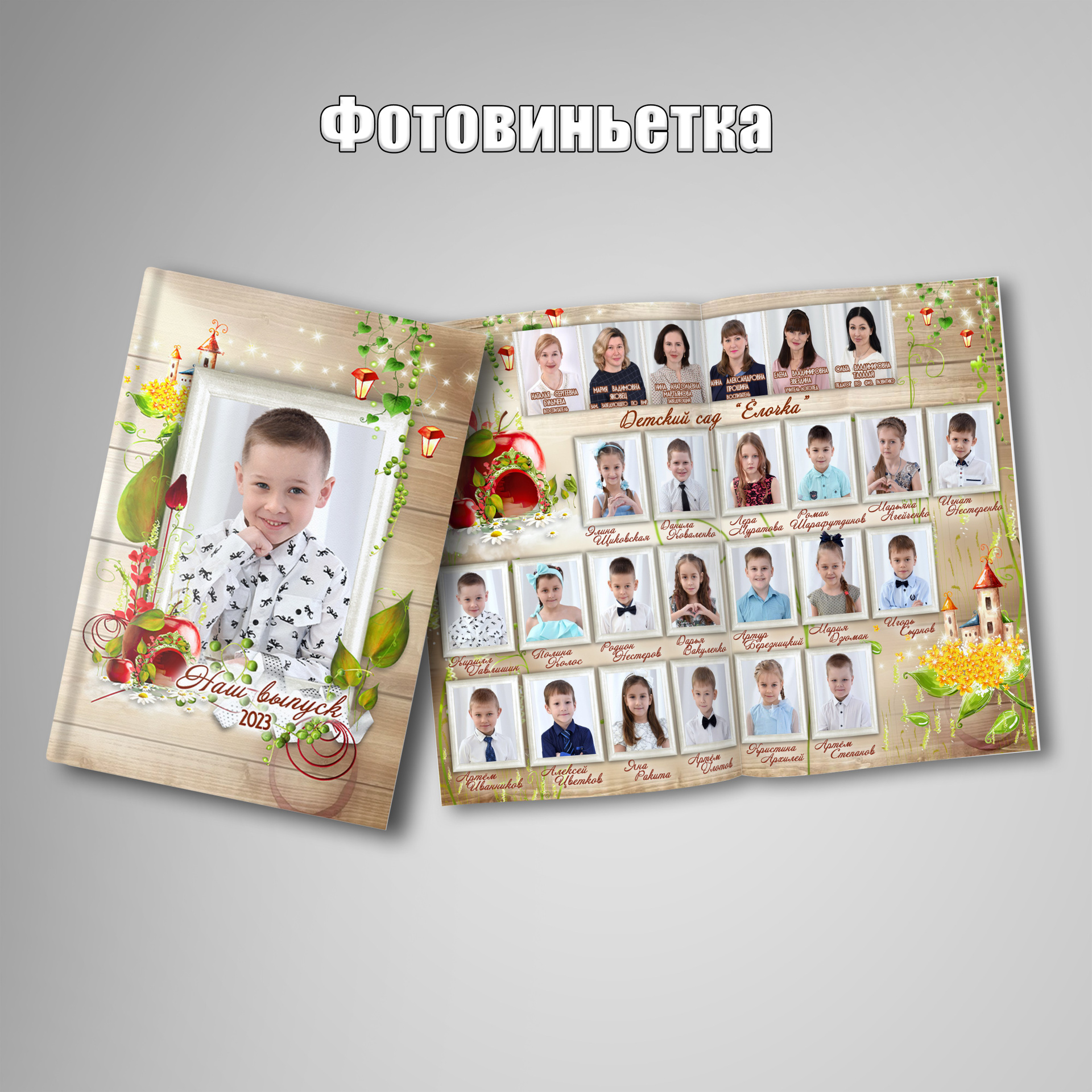 - 2 разворота (фотовиньетка + индивидуальная страница со студийной съёмкой) — 3000 руб.