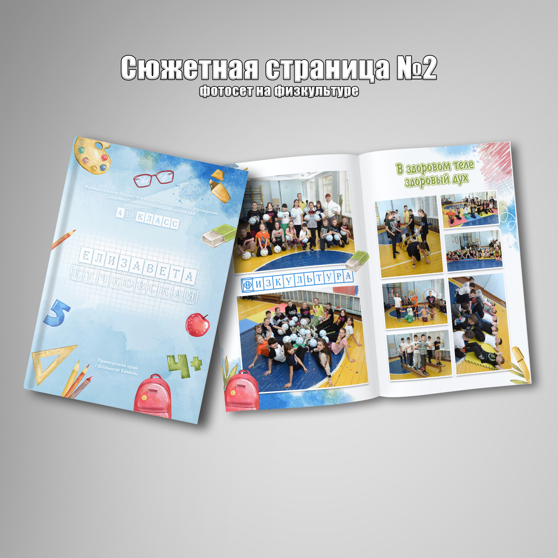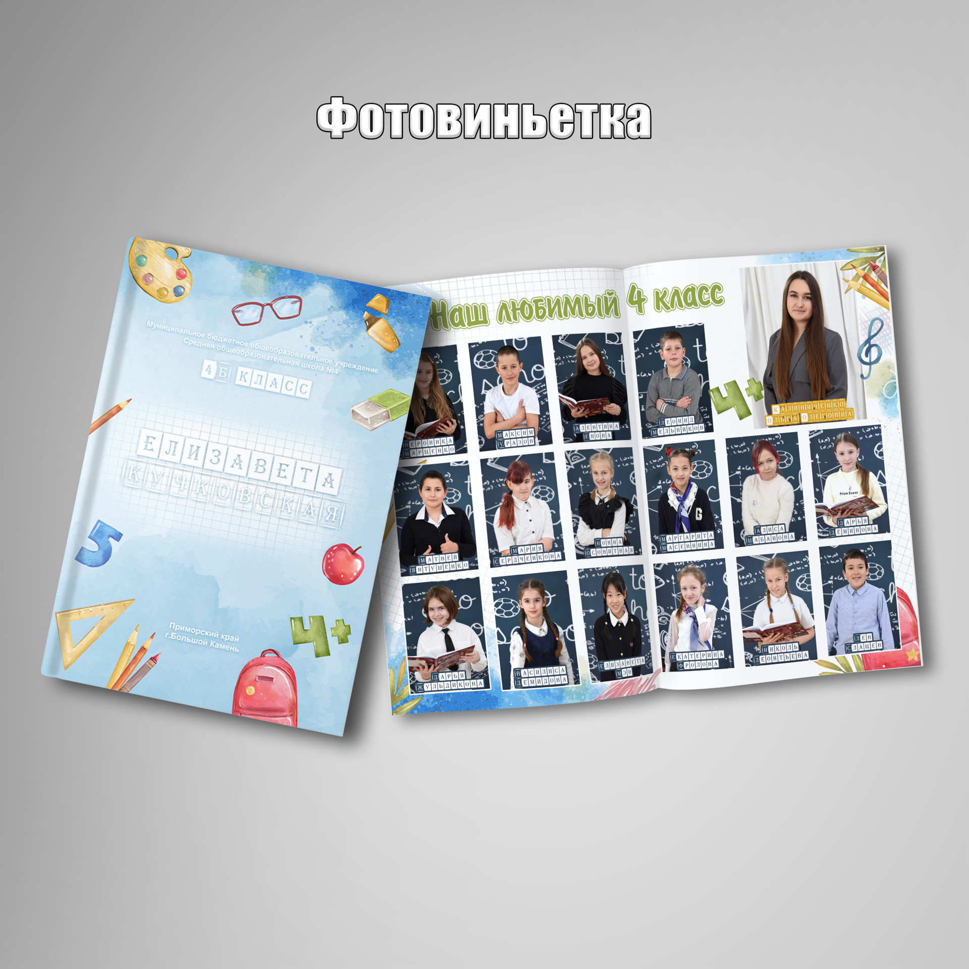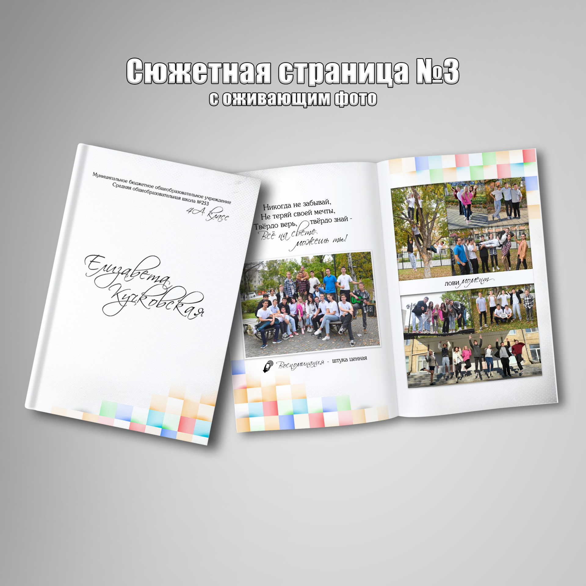 - 4 разворота (фотовиньетка + общий сюжет + коллаж в свободной одежде со студийной съёмкой + индивидуальная страница выпускника) — 5500 руб.